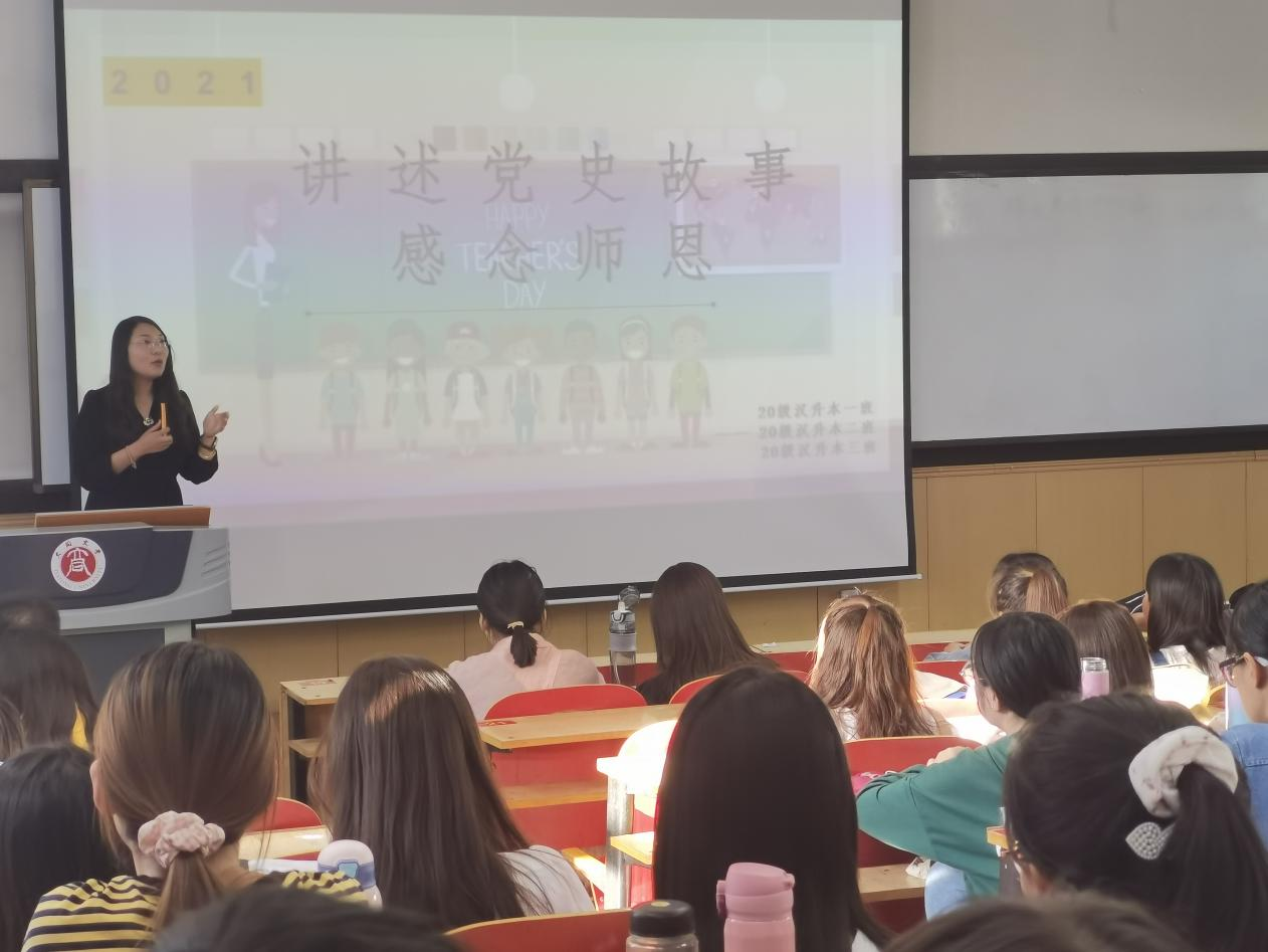 除了献花,同学们还以各种朴实的方式表达最深厚的感情。连日来,各学院各班级先后组织召开了“讲述党史故事,感念师恩”主题班会,同学们通过线上线下方式,分享习近平总书记等党和国家领导人尊师重教的感人故事,分享黄大年、张桂梅等教师楷模的动人事迹,深情表达对师长的感恩之情。