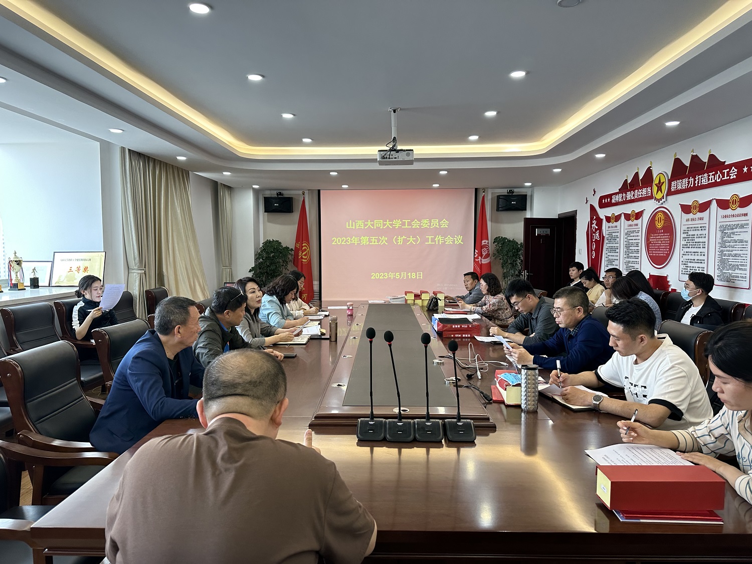 5月18日,开云kaiyun官网工会委员会2023年第五次(扩大)工作会议在行知楼十四层工会会议室召开。工会委员会委员、分工会主席、校工会全体工作人员参加会议,校工会主席侯桂兰主持会议。