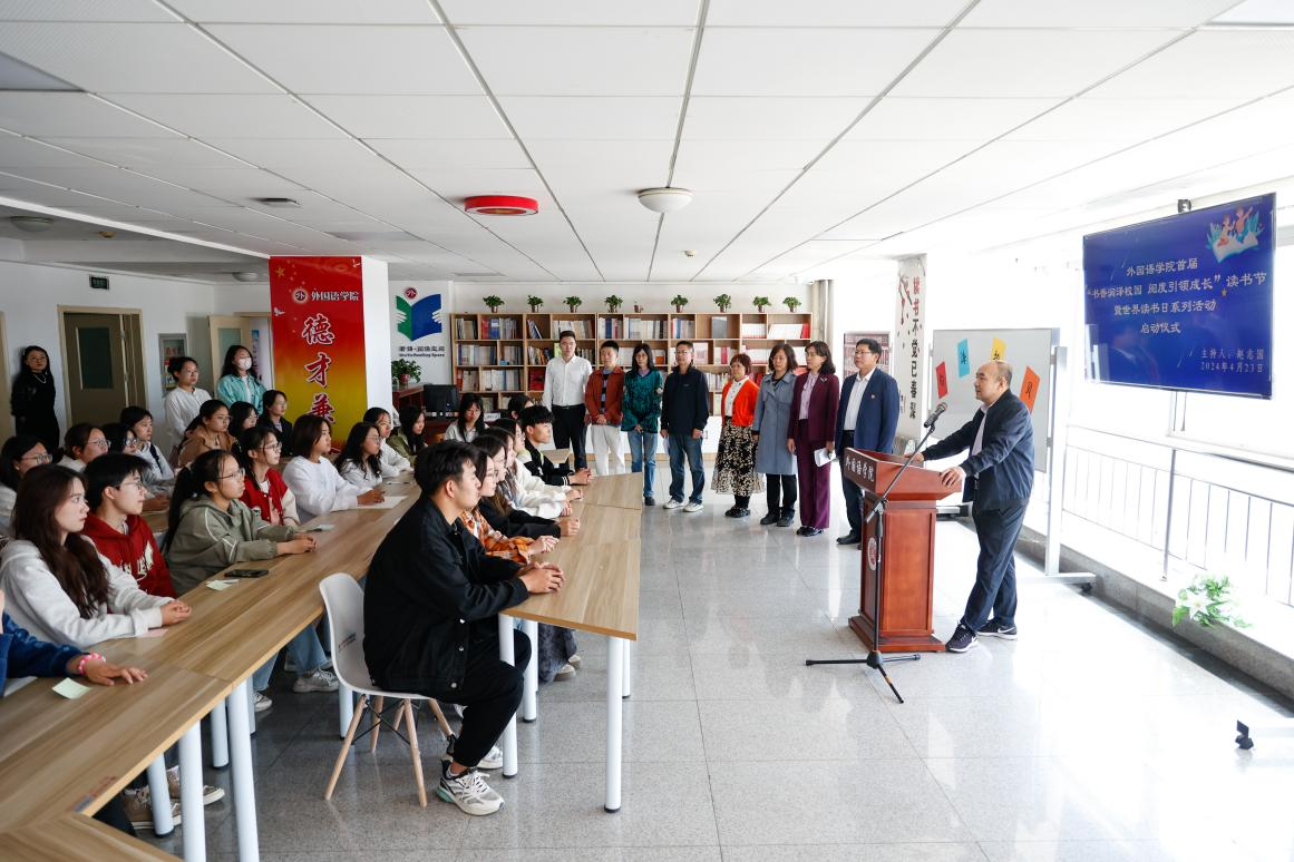 花红柳绿春光好,正是读书好时节。为深入学习贯彻落实党的二十大精神,深化全民阅读活动,持续推进“书香外院”建设,在全院营造“爱读书、读好书、善读书”的浓厚氛围,4月23日上午,外国语学院首届“书香润泽校园 阅‘度’引领成长”读书节系列活动启动仪式在行知楼9层新语阅读空间举行。学院领导班子成员与学院师生代表共同参与了本次活动。启动仪式由学院党委副书记赵志国主持。