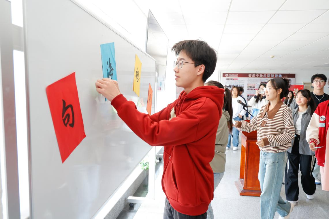 活动现场气氛热烈,师生参与热情高涨,争相在“句海拾贝”展览板前粘贴各自喜爱的词句。
