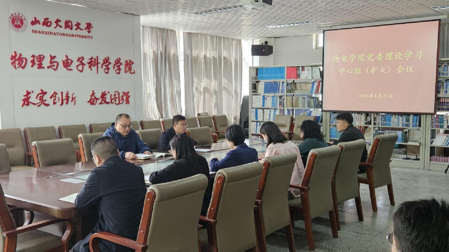 4月25日,物理与电子科学学院在明理楼301会议室召开党委理论学习中心组(扩大)学习会。学院中心组成员、科级以上干部、党支部书记和专职辅导员参加学习。学院党委书记张晓云主持会议。