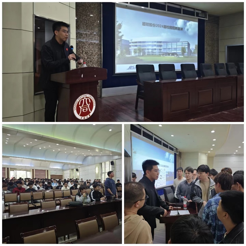 宣讲会上,超硅股份负责人通过播放企业宣传片、PPT展示、问答交流等方式向同学们详细介绍了公司概况、人才策略理念和未来发展前景,并重点介绍了本次招聘的岗位类别、职位要求、薪资待遇等情况。在交流环节,超硅股份负责人结合自身工作经历,分享成功经验,热情地为同学们答疑解惑。同学们踊跃参与,有应聘意向的同学提交了简历。
