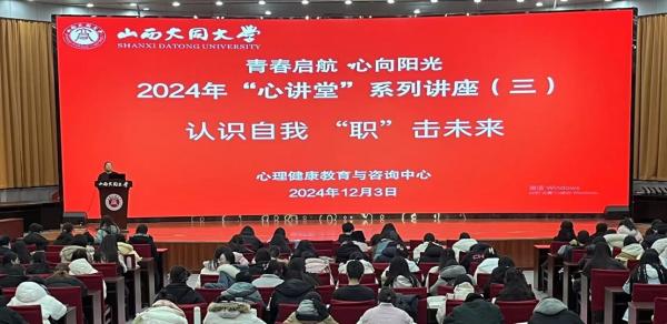 为进一步落实高校立德树人的根本任务,引导大学生树立正确的择业观、就业观,积极推进大学生职业生涯规划教育,提升大学生职业生涯规划理念,学生工作部心理健康教育与咨询中心于12月3日在慎思楼报告厅组织开展了大学生的职业生涯规划专题讲座。本次活动由专职心理健康教师曹晓玲主讲,500余名学生到场聆听讲座。