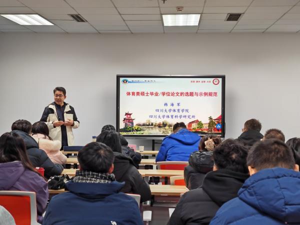 为进一步提升学院研究生的科学研究能力,加强学术交流,12月20日上午,四川大学体育学院副院长、硕士生导师韩海军教授应邀来体育学院作专题学术讲座。体育学院教师以及全体研究生参加讲座,讲座由体育学院院长赵岷主持。