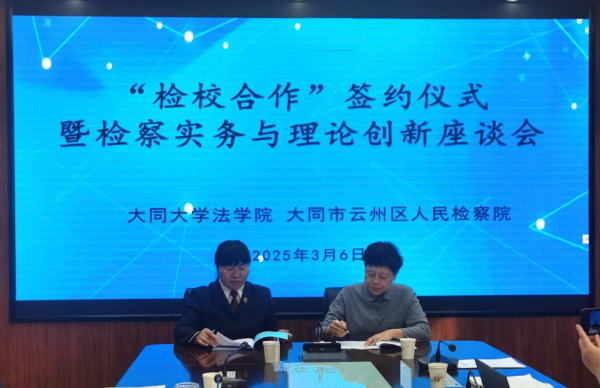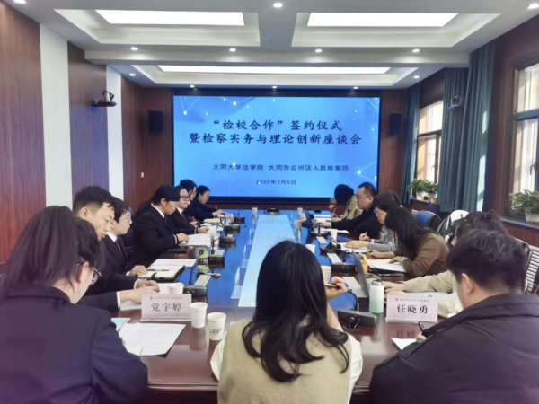 为进一步推动法律学术理论与检察业务深度融合,3月6日,法学院与云州区检察院在区检察院召开校检合作签约仪式暨检察实务与理论创新座谈会。法学院院长杨兴香、教工支部书记及教师代表一行8人参加此次座谈会,会议由云州区检察院党组书记、检察长段华主持,区检察院副检察长武美英及青年检察干警参加会议。