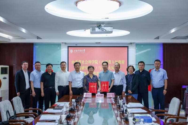 双方领导共同为“山西省人民政府决策咨询委员会省情调研基地”和“博士后科研工作站实践基地”揭牌。