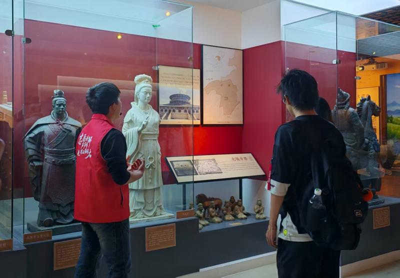 在讲解员的带领下,同学们参观“云冈石窟历史沿革”展区,透过珍贵文物、场景复原与多媒体影像,了解石窟自北魏开凿至明清修缮的千年历程,感受古代工匠技艺,感悟云冈石窟作为民族融合象征的价值意义与文化底蕴。