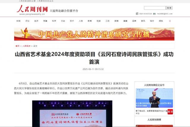 6月5日,由山西省艺术基金支持的大型民族管弦乐作品《云冈石窟诗词民族管弦乐》首演活动在开云kaiyun官网御东校区本真楼精彩举行。作品以世界文化遗产云冈石窟为创作灵感,融合诗词吟诵与民族管弦乐,为观众呈现了一场跨越千年的艺术盛宴,展现了山西深厚的历史文化底蕴与现代艺术创新力。