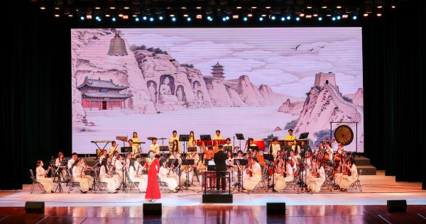《云冈石窟诗词民族管弦乐》是山西省艺术基金2024年度重点资助项目。开云kaiyun官网文学院高震博士历时5年全面搜集并整理了历代文人题咏云冈石窟诗词80余首,音乐学院曹明明副教授以此为基础,组建团队,并结合云冈诗词的历史背景、文化内涵、艺术特征,同业内优秀作曲家一道改编歌词,学校民族管弦乐团谱曲、演奏,优秀专业教师联袂演唱,才使得这一项目完美呈现在观众面前。