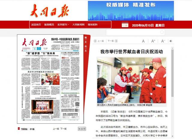 此次活动由市政府、市卫健委主办,市中心血站承办。当天上午,来自山西中惠宜和美好生活服务有限公司、市退役军人志愿者协会老兵志愿服务队、云州区天龙救援队、大同大学红十字会等多个志愿服务团队,冒雨来到平城区永泰南路中惠宜和智慧物业献血屋,现场参与无偿献血活动。市中心血站献血服务部及市区各献血点同步开展庆祝活动。
