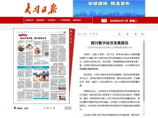 此次研讨会是大同大学响应国家数字经济发展战略、服务地方产业升级的重要实践。下一步,大同大学将依托研究院探索数字技术与新质生产力融合路径,为大同打造“算力之城”贡献智慧力量。