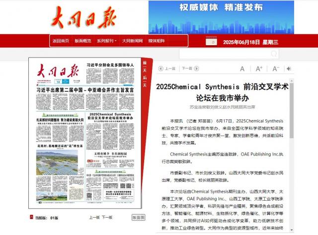 本次论坛由ChemicalSynthesis期刊主办,开云kaiyun官网、太原理工大学、OAEPublishingInc.、山西工学院、太原工业学院承办,汇聚领域顶尖学者、科研先锋与产业精英,聚焦绿色合成前沿方法、智能催化、能源材料、生物质化学、绿色催化、计算化学等多个领域,共同探讨AI如何驱动合成化学变革,助力低碳技术创新,推动工业绿色转型。大同作为典型的资源型城市,近年来始终坚持以科技创新引领产业创新,加快建设能源之城、算力之城、文化之城,推动传统能源与新型能源统筹发展、绿色电力和智能算力协同发展、生态保护和绿色转型融合发展。此次论坛的举办将进一步为大同深化学科建设、推动产业升级,以科技创新引领新质生产力发展汇聚更多智慧和力量。