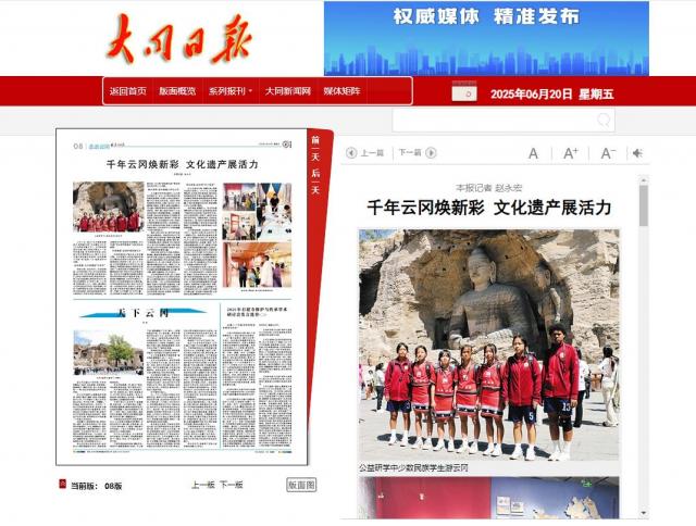 云冈研究院相关负责人说,公益研学让云冈石窟成为中华文明对话的桥梁,让少数民族足球少女用运动精神诠释文化传承。今后,云冈研究院将持续推动“石窟文化进校园”主题活动,以更丰富的实践课程、更创新的传播形式,让全国各地的青少年从文化旁观者成长为传承者、讲述者、创造者,共同谱写云冈文明的青春乐章!