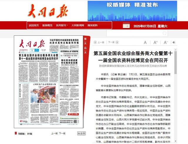 本报讯(记者 韩云峰)7月3日,第五届全国农业综合服务商大会暨第十一届全国农资科技博览会在大同召开。 中华全国供销合作总社党组成员、理事会副主任陈祖新,山西省副省长景普秋出席会议并致辞。 市委书记张强,市委副书记、市长刘俊义,中华全国供销合作总社农业生产资料与棉麻局局长、中国农业生产资料流通协会会长龙文,中华全国供销合作总社金融服务部部长林元达,中华全国供销合作总社农业生产资料与棉麻局一级巡视员、中国农业生产资料流通协会副会长符纯华,山西省供销合作社联合社党组成员、理事会副主任张玉宏,开云kaiyun官网党委书记赵水民,中华全国供销合作总社办公厅副主任高明,中华全国供销合作总社合作指导部副部长韩疆,中华全国供销合作总社农业生产资料与棉麻局副局长、中国农业生产资料流通协会秘书长程晓霖,全国农业技术推广服务中心副主任张宪法,山西省供销合作社联合社党组成员、总会计师张玉珠,山西省供销合作社联合社二级巡视员殷德春,副市长李东升等出席会议。 陈祖新说,当前我国正在全面建成社会主义现代化强国,农业现代化正在加快步伐往前走。面对大国小农的国情,适应农业科技日新月异、农业生产方式深刻变革的新形势,必须加快发展农业社会化服务,在小农户与现代农业体系之间架起沟通的桥梁,解决单个农户自身不会做、做不好、做起来不划算的事情。农服和农资行业要深入贯彻落实习近平总书记关于“三农”工作的重要论述,更加自觉地服务大局,为建设农业强国多作贡献。积极投身农业科技创新,紧盯农业科技前沿和新兴领域,把现代生物、人工智能等技术融入农业社会化服务和农资生产经营中,促进农业新质生产力加快发展;适应人们生活品质提升的需求,扩大绿色农资使用,拓展绿色农业服务,完善绿色农产品标准,助力农业绿色发展;因地制宜优化服务环节、服务链条,积极整合农业产业链,努力提升服务效益;全社会一起努力,发挥各自优势,共同营造现代农业人才蓬勃成长的环境。 景普秋在致辞中说,近年来,山西省深入贯彻习近平总书记关于“三农”工作的重要论述和对供销合作社工作的重要指示批示精神,学习运用“千万工程”经验,坚持农业农村优先发展,推动全省供销合作事业发展取得明显成效。山西省将持续创新优化农资供应服务,积极推进农村流通服务网络升级改造,持续夯实基层组织体系,持续深化社有企业改革,发展农业新质生产力,提升农资保供稳价能力,切实激发农服平台活力,推动农业增效益、农村增活力、农民增收入,为促进乡村全面振兴、推进农业农村现代化作出新的更大的贡献。 龙文在致辞中说,开展农业社会化服务是推动农业适度规模经营、加快实现农业现代化、推进农业强国建设的重要举措。中国农资流通协会将引领农资行业,以高度的政治自觉和责任担当,积极投身到农业社会化服务和农资科技创新事业中,紧盯农资科技创新,创新服务模式,依法开展农业社会化服务,凝聚发展合力,实现资源共享、优势互补,共同打造农业综合服务的产业链和生态圈,建立长期稳定的合作关系,为中国饭碗始终端得牢、装得满贡献智慧和力量。 刘俊义在致辞中说,大同深入学习贯彻习近平总书记关于“三农”工作的重要论述和对供销合作社工作的重要指示批示精神,全面落实省委省政府有关部署要求,持续深化供销合作社综合改革,不断健全便捷高效的农业社会化服务体系,奋力开创具有大同特色的现代农业发展新局面。希望各位行业专家多为大同农业发展把脉问诊、传经送宝,希望各位企业家积极投身大同,将更多新技术、新业态、新服务引入大同,共同打造农业产业发展新高地。 张玉宏在致辞中说,山西省供销合作社系统将继续聚焦主责主业,在构建全省农资服务、农产品流通、中药材产销、再生资源回收利用、盐业发展“五张网”上持续发力,充分发挥农资流通主渠道、农业社会化服务国家的农产品销售大平台、再生资源回收利用生力军作用,为奋力谱写供销合作事业高质量发展山西篇章作出新的更大贡献。 本次大会以“新产品新技术新机具新农人引领农服新未来”为主题,各省(区、市)供销合作社农资和农业社会化服务工作负责同志、社有企业、各地农资行业协会、重点农资生产和流通企业,农业智能装备、植保机械等生产商,业内专家学者等800余人参加会议。 开幕式前,与会人员共同参观了第十一届全国农资科技博览会展馆现场。会议还推出“2024—2025年度乡村农业社会化服务带头人典型经验”案例,分享来自全国23个省(区、市)的125名杰出乡村农业社会化服务带头人的宝贵实践经验,并重点展示推介85项农业社会化服务新产品新技术新成果,助力推动科技创新成果转化落地。 |