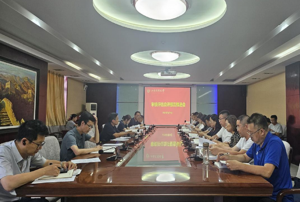 自评报告撰写专班按照审核评估指标体系及自评报告1.0版内容,逐项梳理师资队伍、师德师风、教学能力、学生综合素质及支持服务等内容,参会的职能部门和学院对以上内容和自评报告中的数据、特色亮点、问题整改及举措等进行了研讨,提出修改意见和建议。